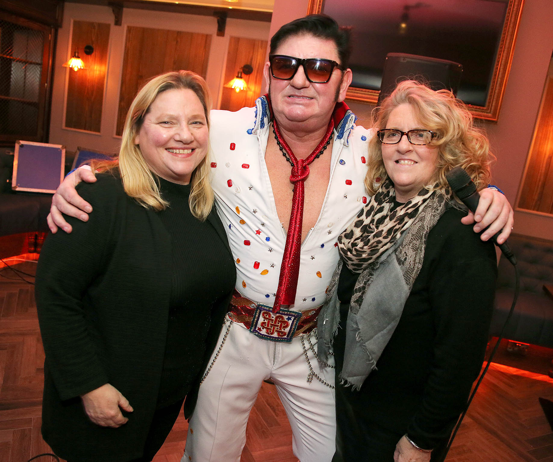 Elvis Tribute Greg Traynor with bar staff Tom and Emer Glynn