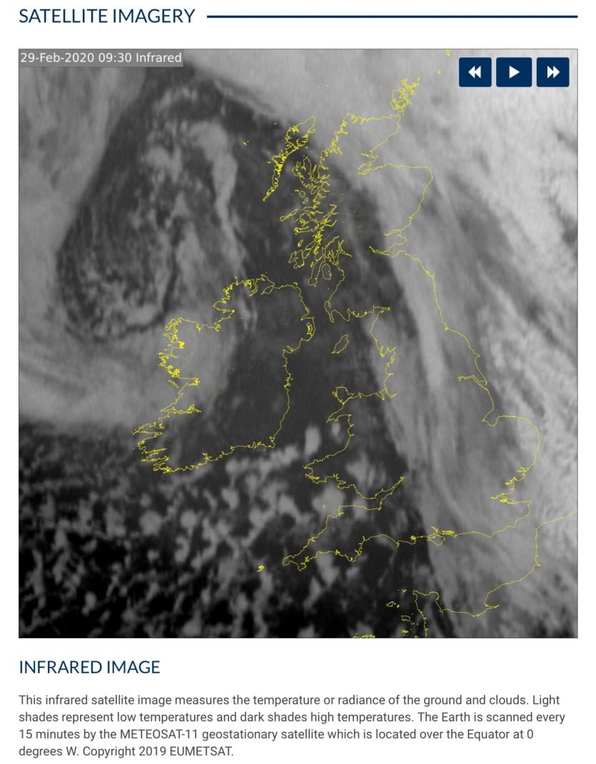 Satellite image measures the temperature or radiance of the ground and cloud. The Earth is scanned every 15 minutes by the METEOSAT-11 geostationary satellite.