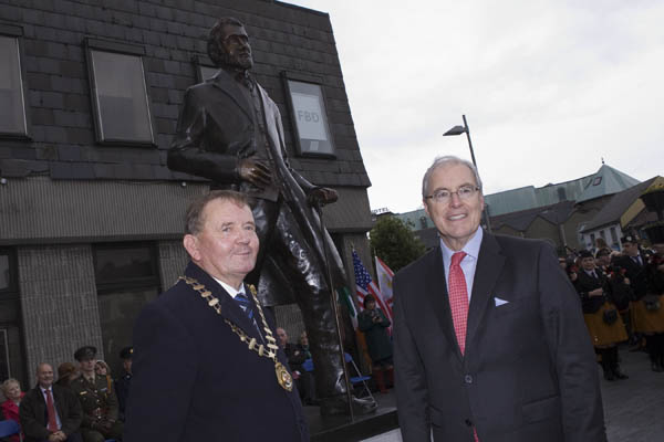 Mayor Of Kildare Brendan Weld and American Ambassador to Ireland Kevin O'Malley unvailing the John Devoy. Photos by Anthony Daly.[/caption] $45,000 was raised by the New York John Devoy Memorial Committee to help fund the sculpting of the statue that was carved out by sculptor Jarlath Daly.Subscribe or register today to discover more from DonegalLive.ie