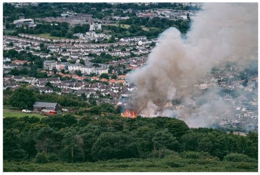 Several units of Wicklow Fire Service rushed to the scene and are bringing the fire under control. The Air Display, which has been expanded into a two-day event this year, has not been affected by the incident.