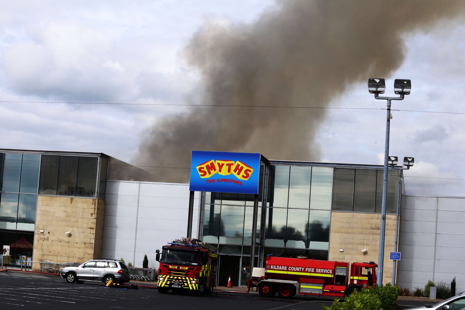 Several units of Kildare Fire Service are fighting the blaze which is located at the rear of the Toystore. Motorists have been urged to take extra care while driving in the area as their visibility may be affected.