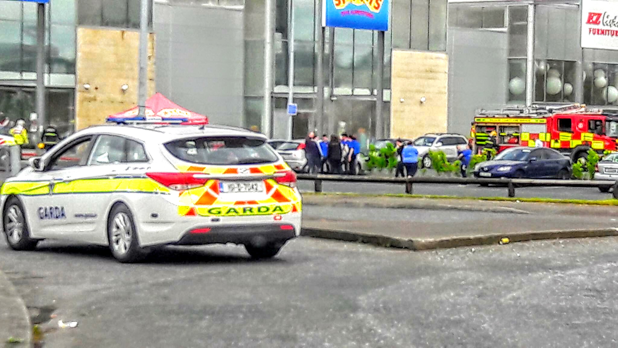 Thick plumes of dark grey smoke are billowing from the scene of the incident near the N7/M7. Gardai are at the Retail Park sealing off the area and are directing traffic on local roads.