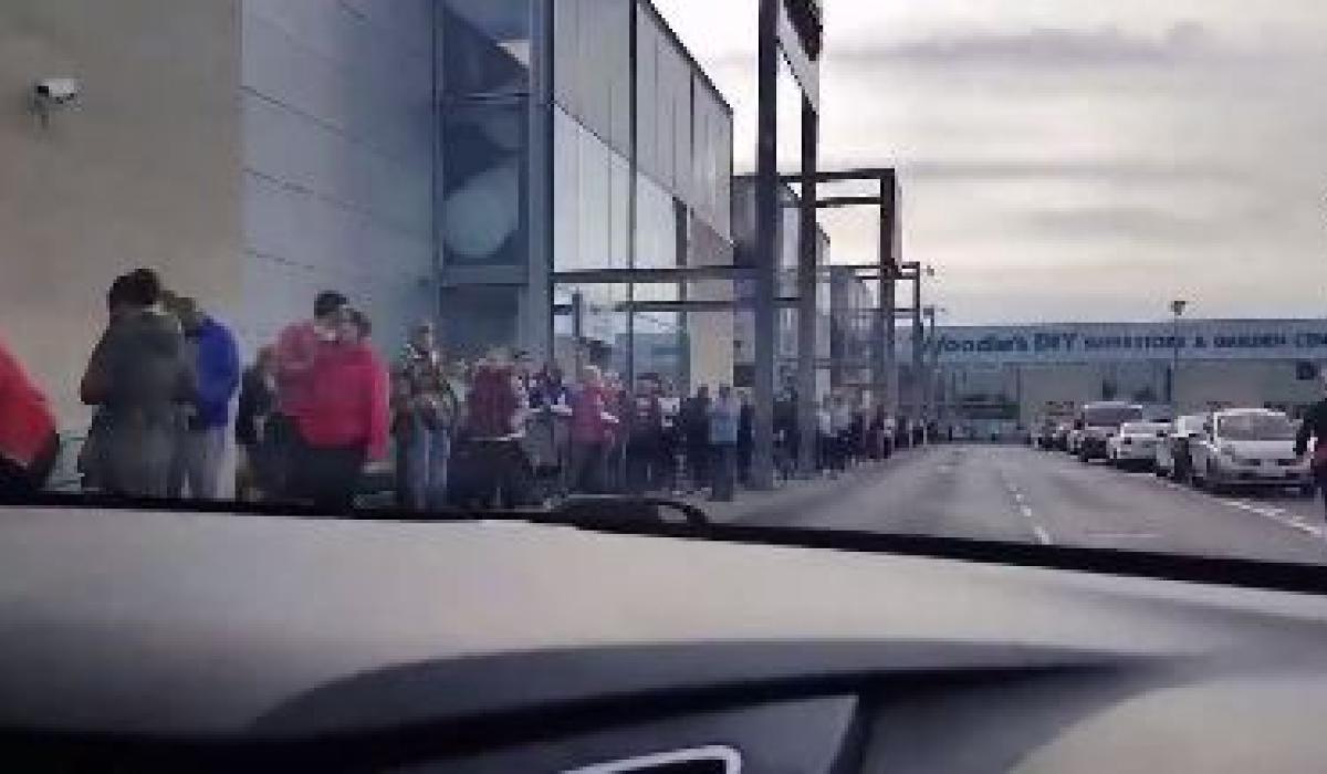 Smyths Toystore queues fire sale 2   Smyths Toystore queues fire sale It may only be August - but a lot of Christmas shopping was done this morning at Smyths Toystore in Naas. A 'fire sale' offering up to 40% discounts drew hundreds of shoppers who queued for more than 100 metres as this video taken at 8.50am by Naas resident Barry Leydon shows. The first customer began queuing at 1am - eight hours before the opening at 9am which saw buyers splashing out on trolley-loads of toys. Smyths' staff had organised the event very well by hiring extra security personnel - and Gardai were also on duty to help out with crowd management. A maximum number of people were allowed in at a time and when they left, the next group were admitted. It took Barry more than 20 seconds to drive the length of the line which was at Woodie's DIY store when this footage was filmed. View the Video, which also appeared on Joe.ie, here: https://twitter.com/redmosquitoIE/media
