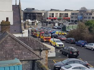 Several Garda vehicles, ambulances and Kildare Fire Service personnel responded to the incident. A witness reported seeing a group of family members consoling each other at the scene of the station.
