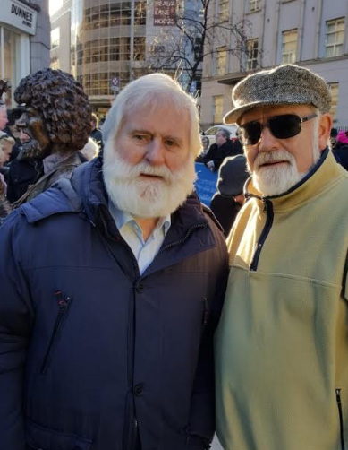 Well known Athy musician Rob Chander with John Sheehan of the Dubliners at the unveiling of the Luke O'Kelly sculpture in Dublin last week