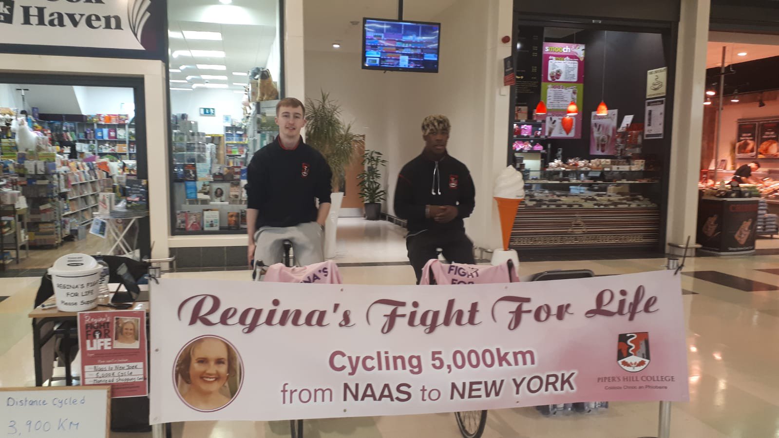 Naas students are busy fundraising for a former teacher who is battling cancer for the third time. Once the students at Piper's Hill College realised that a Go Fund Me campaign is taking place for Regina Duffy, they quickly embarked on a major fundraising initiative. Currently, Regina is being treated in New York, so the students came up with the idea of showing their support for Regina by cycling the 5,000km to New York. They managed to clock up the 5,000km by staying in Naas. The cycle was organised over four days in school and at Tesco Monread on the final day. Regina got married in March 2018, and last Christmas, when the new broke that she has cancer for the third time, had to go to New York for treatment which she can't get in Ireland. Regina’s cancer is rare and difficult to treat. The most promising chance of a successful outcome was to seek care abroad, which is what has brought her to Memorial Sloan Kettering Cancer Centre in New York. They are the world leaders in the treatment of her type of cancer and are currently engaged in the research and development of new therapies. Her sister Sian Devine said: "For most newly-weds, Christmas is yet another joyous occasion in an already blissful year. There’s so much to look forward to –spending time with family and friends; looking through photo albums that attest to the fantastic highs of the previous months and making plans for the New Year." She said: "Regina was first diagnosed with breast cancer in 2011. Once treatment was finished, we were hopeful that she could move on from this challenging time in her life. Sadly this was not to be!In 2014 her cancer was back in the form of a brain tumour. Once again she made it through treatment and bounced back to her former glory! Two year later, in 2016, she and all the family were dealt a severe blow with the death of her beloved mother Julia. Regina had relied so much on the unwavering support of her mum as she too had fought her own breast cancer battle. When 2017 dawned and Regina was busy planning her wedding to Jason, it seemed like her life had finally taken a turn for the better. Their wedding in March 2018 was a wonderful occasion. Regina’s latest diagnosis coming so soon after it seems so unfathomably cruel." A spokesperson for Piper's Hill College said: "Students committed to the campaign by fundraising for their sponsored cycle. There was no shortage of volunteers to cycle even after school and during their lunch breaks, demonstrating the true spirit of Piper’s Hill College. A big congratulations to the students and staff for all their hard work and incredible goodwill in helping Regina. An amazing €15,697 has been raised to date." [caption id="attachment_264797" align="alignleft" width="300"] Regina Duffy battling cancer for the third time.[/caption] [caption id="attachment_274719" align="alignleft" width="300"] Amy Clarke, Holly Palmer, Mark Nolan, Isabel Quinn and Anna Scott.[/caption] Cian Harris and Jessica Kilduff at Table Quiz. [caption id="attachment_274730" align="alignleft" width="300"] Piper Hill cyclists[/caption] [caption id="attachment_274734" align="alignleft" width="300"] Cycling for Regina Duffy fund[/caption]
