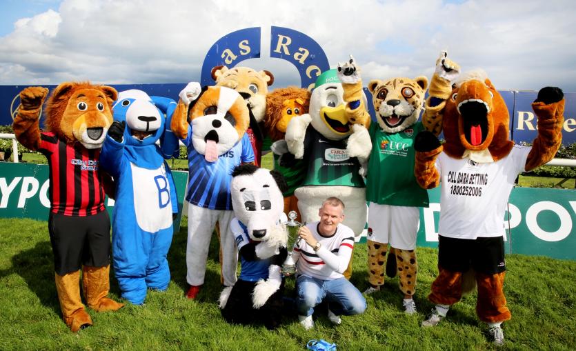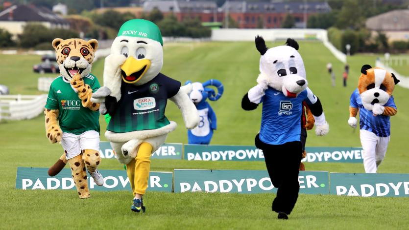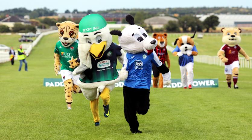 Nine representatives including Billyberry the Goat (Waterford FC), Rocky the Seagull (Kildare County), Corky the Cheetah (Cork City FC), Leo the Lion (Limerick FC), Terry the Tiger (Galway United), Collee the Dog (UCD) and winner Harper the Dog (Finn Harps) took part in the second running novelty event at the Kildare track.