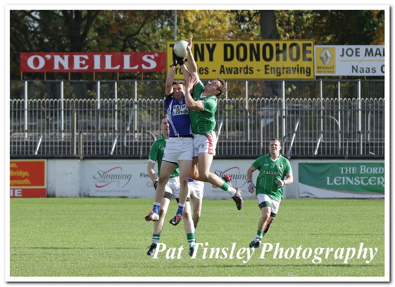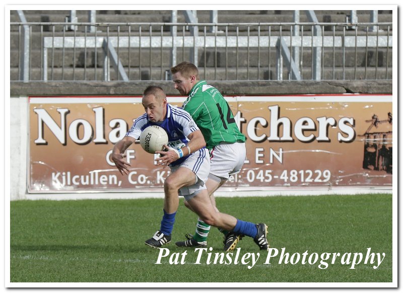 Castledermot's Gavin Farrell and Clonaslee's William Young compete in the air for the ball.[/caption] Clonaslee eventually settled and Glen Mc Evoy, who had already missed one attempt from a free, got their first score with a close range free. Darren Hogan smashed over the point of the game from the right wing soon after to close the gap to one point. The game then entered a lull period, with neither side scoring for 15 minutes, but David Keating eventually got the scoreboard ticking again when he rushed onto a pass from Emmett O'Keefe and slotted over from close range. Mc Evoy responded down at the other end with his second point from a free, but this was quickly cancelled out by another pointed free from Murphy. Then came the sending off, with most of the crowd puzzled as to what exactly Keating had done wrong, with the player clearly distraught at being sent to the line too. https://www.youtube.com/watch?v=1pcIQ_AbrOw It left the second half finely balanced but through a combination of committed defending from Castledermot and poor finishing from Clonaslee, the Kildare club kept their opponents at bay. Mc Evoy got the Laois side up and running with a simple tap over from a free, and Castledermot were finding it very hard to create any openings up front. They eventually got onto the scoreboard again with 14 minutes of the second half played when Gavin Farrell hacked over a loose ball after David Keating's free had dropped short. [caption id="attachment_52300" align="alignnone" width="800"]