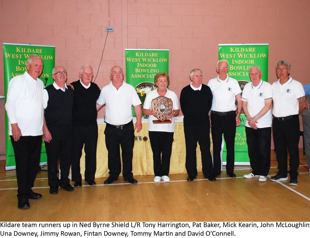 The Ned Byrne Shield bowling competition came to its conclusion on Sunday 14th May in the Rathcoffey GAA Hall. A hectic schedule on the day with both semi-finals and final been played and to add to the attraction the loser of the semi-finals having to play to determine 3rd place. In the first semi-final we had the distinction of two West Wicklow teams competing against each other, namely Donard/Glen (A) and Donard/Glen (B). While in the other semi-final Kildare and Celbridge were the participants. The winners of each match would be decided on the aggregate of shots on both mats.Vast Experience The Telling Factor