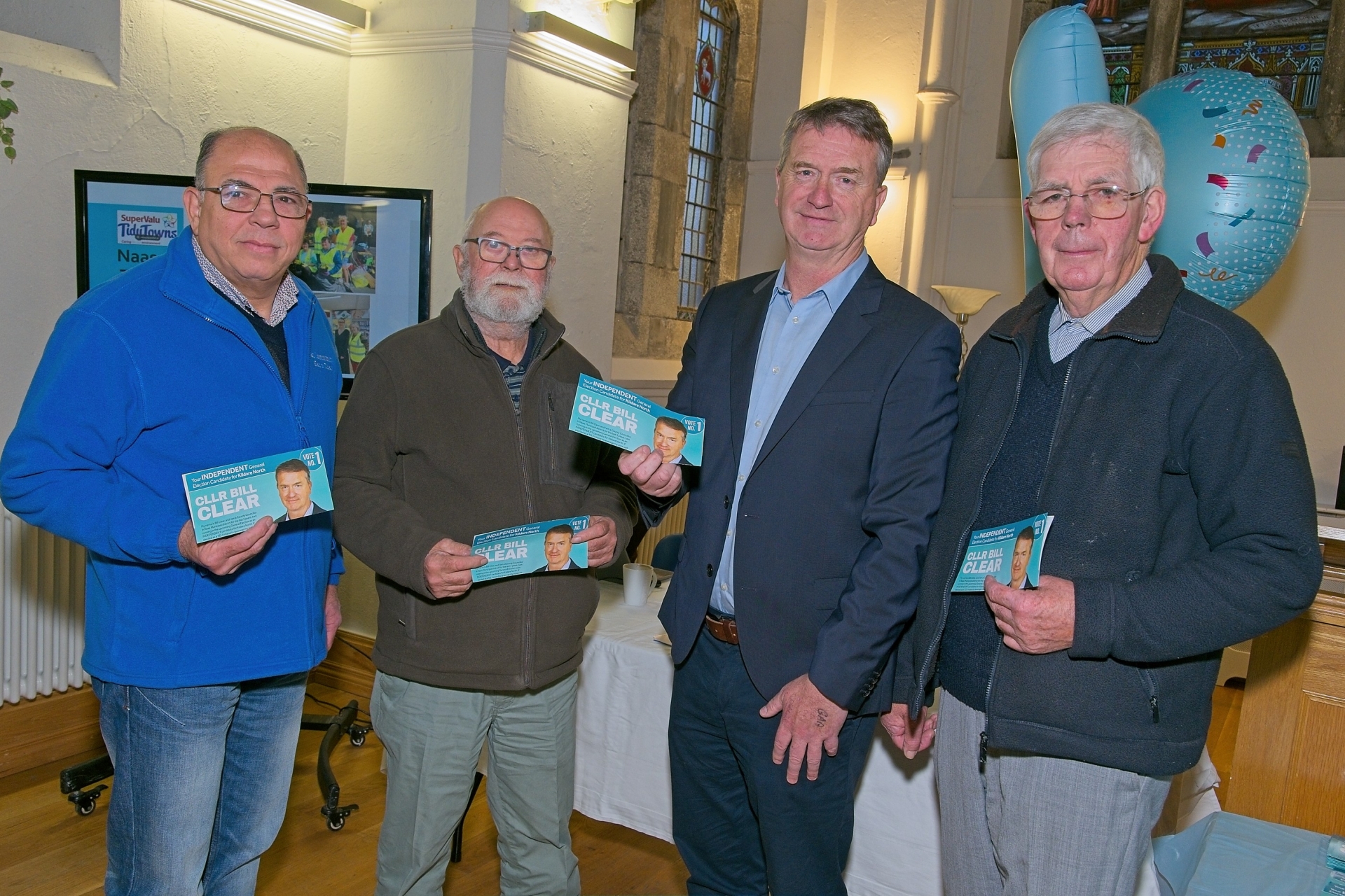 Independent politician Bill Clear has launched his campaign - with the help of family members and fellow Naas councillor Seamie Moore.