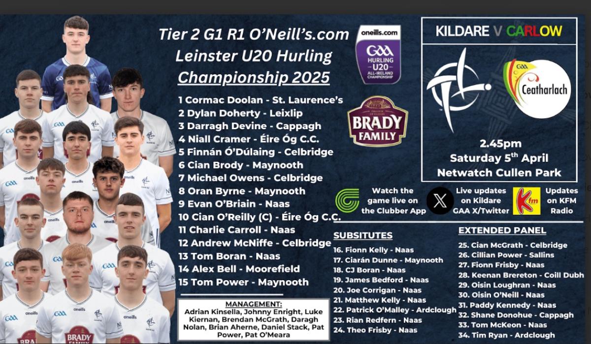KILDARE: Cormac Doolan (St Laurence’s); Dylan Doherty (Leixlip), Darragh Devine (Cappagh), Niall Cramer (Éire Óg Corra Choill); Finnán Ó Dúlaing (Celbridge), Cian Brody (Maynooth), Michael Owens (Celbridge); Oran Byrne (Maynooth), Evan O Briain (Naas); Cian O'Reilly (Éire Óg Corra Choill), Charlie Carroll (Naas), Andrew McNiffe (Celbridge); Tom Boran (Naas), Alex Bell (Moorefield), Tom Power (Maynooth). Subs: Ciarán Dunne (Maynooth) for Finnian Ó Dúlaing (40 minutes); Theo Frisby (Naas) for Alex Bell (40 minutes); Matthew Kelly (Naas) for Dylan Doherty (47 minutes); James Bedford (Naas) for Darragh Devine (48 minutes); CJ Boran (Naas) for Andrew McNiff (58 minuters);