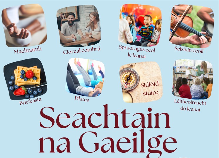 Cuirfear tús leis an gclár an 1 Márta le seisiún machnaimh ar line agus ciorcal comhrá i gCLG na Sollán. Beidh imeachtaí ann d’idir óg agus aosta ar gach leibhéal Gaeilge sa choicís ina dhiaidh sin – Pilates, rang cócaireachta, ceardlann do thuismitheoirí faoi theicneolaíocht na Gaeilge, Aifreann dátheangach, ciorcail chomhrá, rithpháirce (parkrun), spraoi, ceol agus léitheoireacht do leanaí óga, ceolbhiongó (muna bhfuil a fhios agat cad é, bí linn an 10/3!) agus siúlóid staire, agus beidh Meitheal Chill Dara ar siúl an 11 Márta san Óstán Glenroyal i Maigh Nuad (beidh tuilleadh faoi sin an tseachtain seo chugainn!).