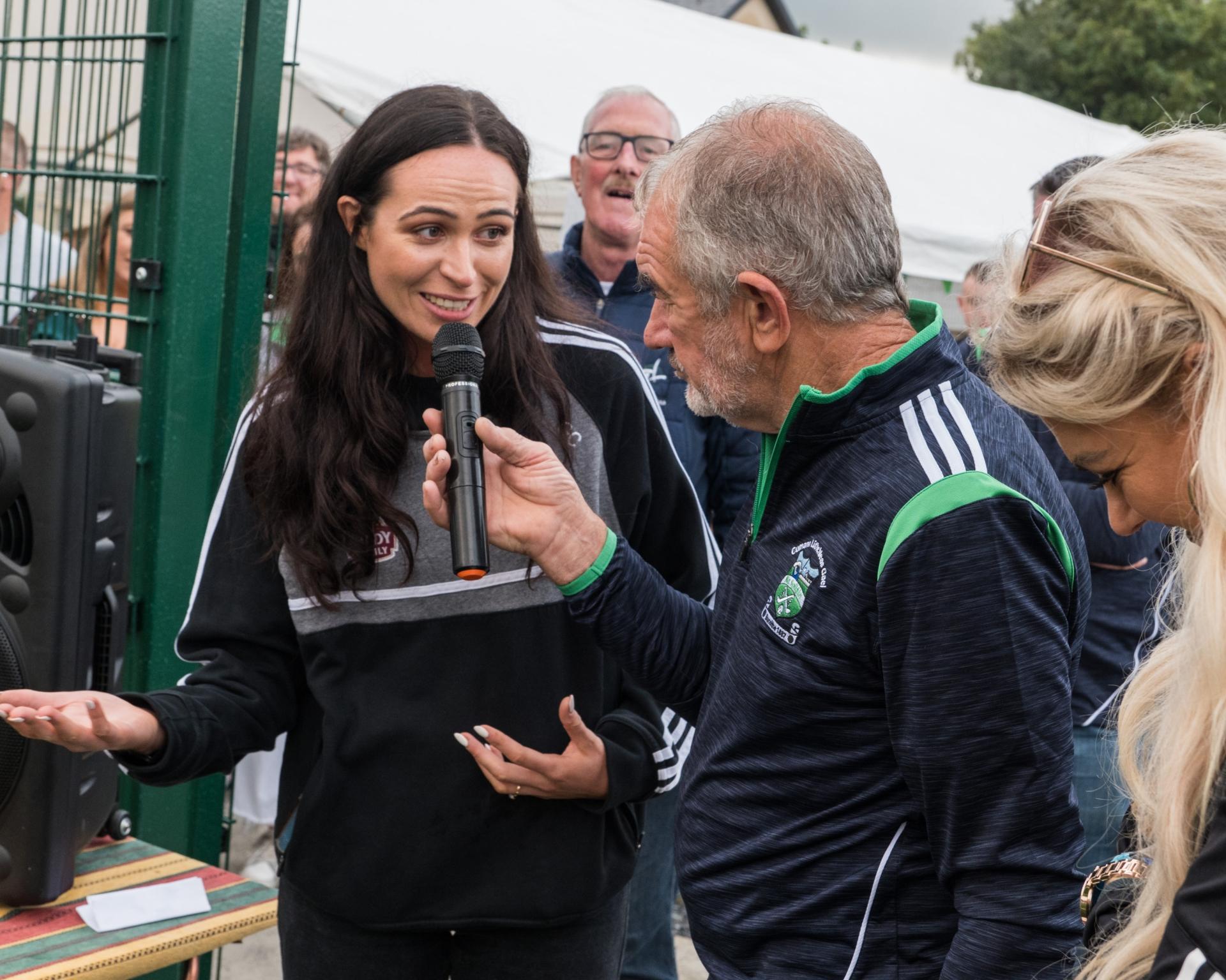 Grace Clifford of the Kildare Ladies Intermediate All Ireland Champions Team being interviewed with MC fro the evening Murt Walsh.