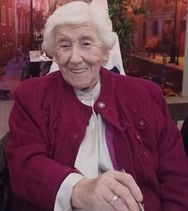 Deeply regretted by her loving family, Adrienne, Niall, John, Sheila, Joanne and Mary, daughter-in-law Angie, son-in-law Pete and John's partner Leona, her cherished grandchildren and great-grandchildren, extended family and many friends, and in particular her long-term carer and special friend Karen to whom the family are very grateful.