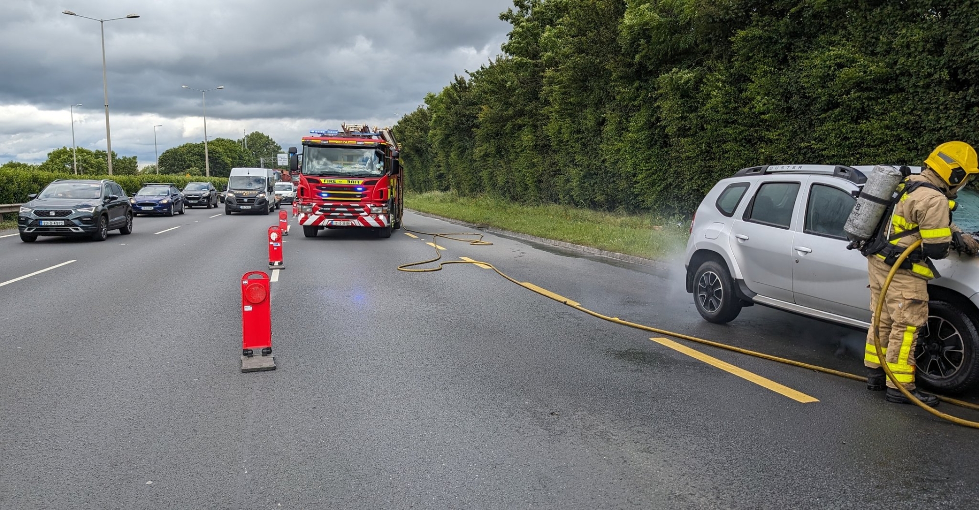 Firefighters deal with the vehicle on fire on the N7 on Thursday (Photo: Dublin Fire Brigade)