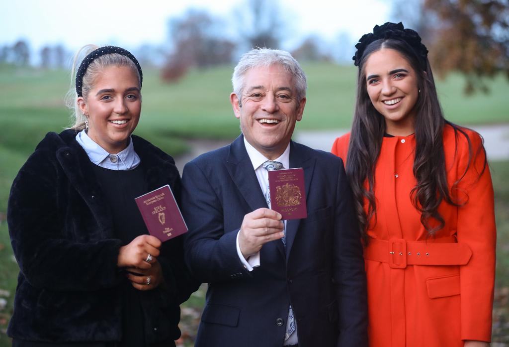 Mr Dooley also thanks his family, wife Mary, and children Tadhg, Rebecca and Sophie (photographed below with John Bercow) for their support. He presented the former speaker with a purple passport.