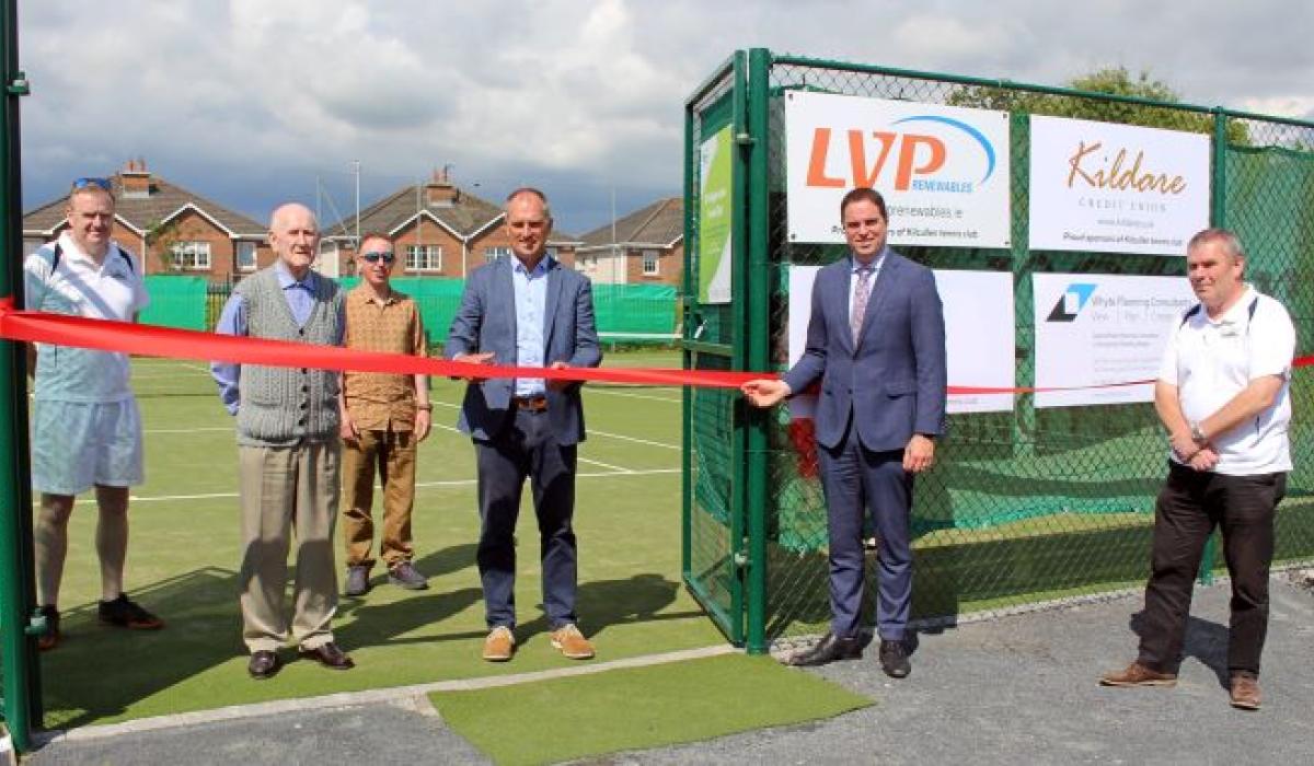 The club was delighted to welcome the CEO of Tennis Ireland, Richard Fahey who complimented the newly installed courts. Other local supporters & dignitaries also attended along with Eamonn Quirke of KARE and Peter Trueman, participant in Leinster Tennis' Enjoy Tennis programme. Peter and club coach Cormac Doherty played an exhibition match for the cheering supporters to round off the day and Peter was presented with a medal by Martin Heydon TD.