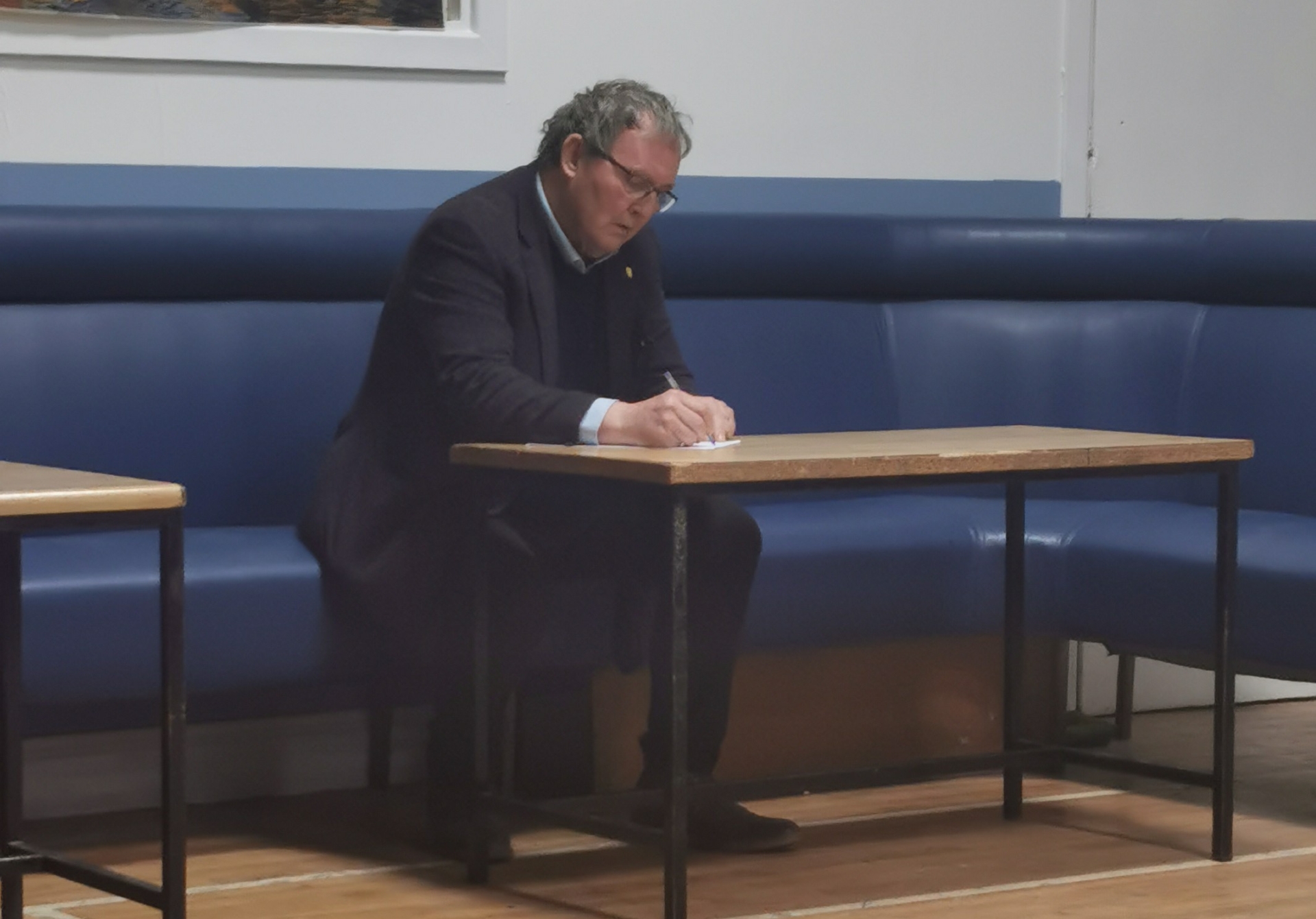 Mayor Noel Heavey was among those helping to organise number of contact sheets, which were handed out at the meeting. Above he can be seen signing one of the sheets.
