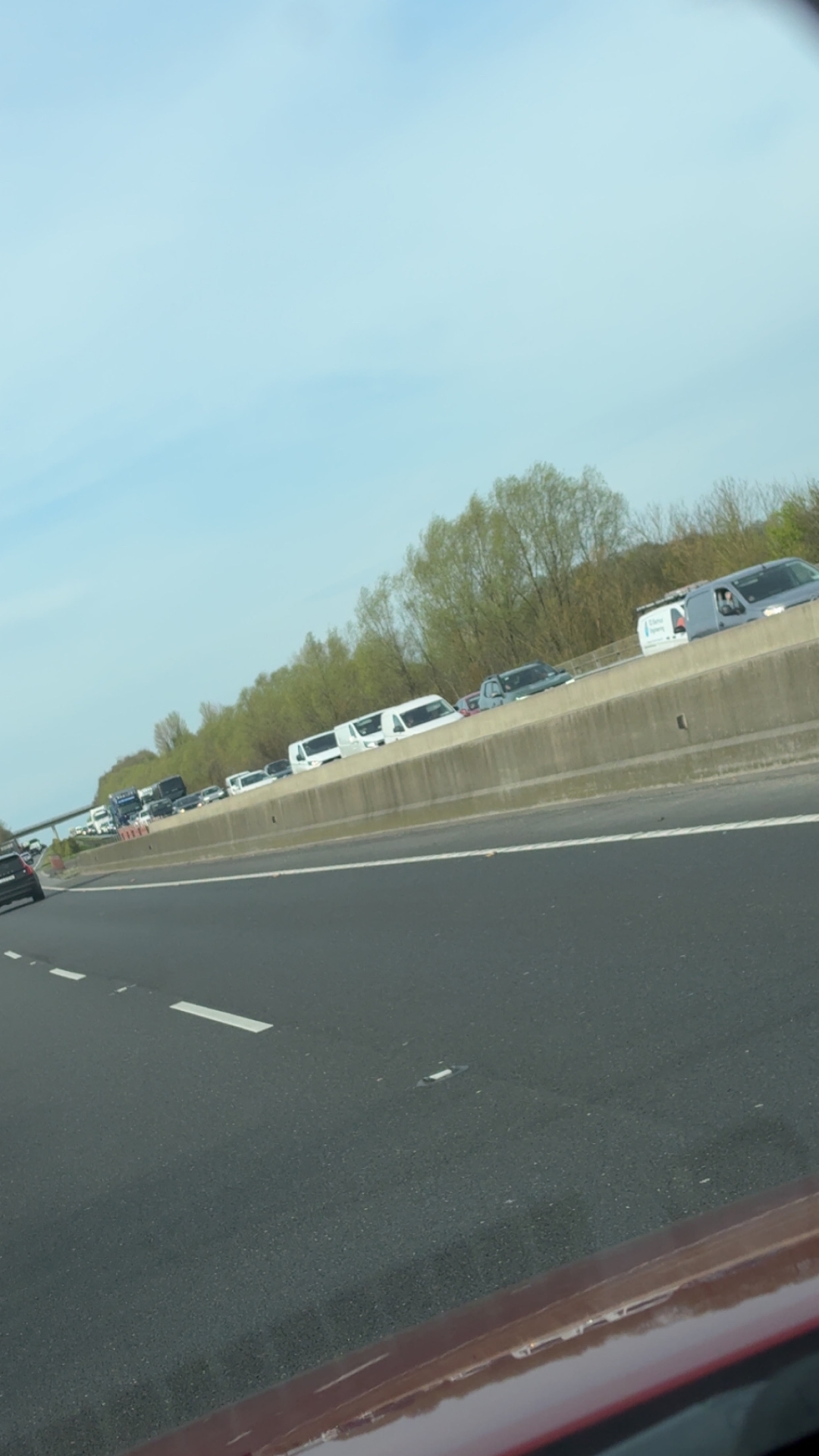 A view of today's protest which is confined to one side of the motorway