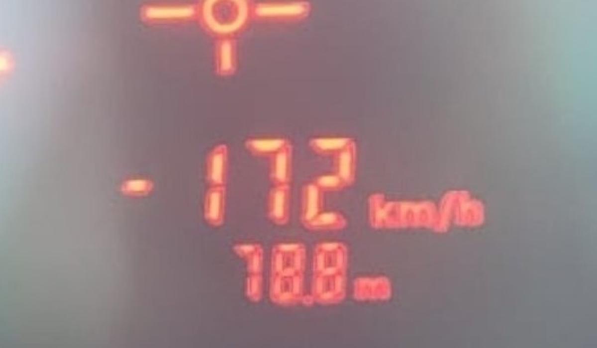 The Unit detected a motorist travelling at 172kmh in an 80kmh zone.