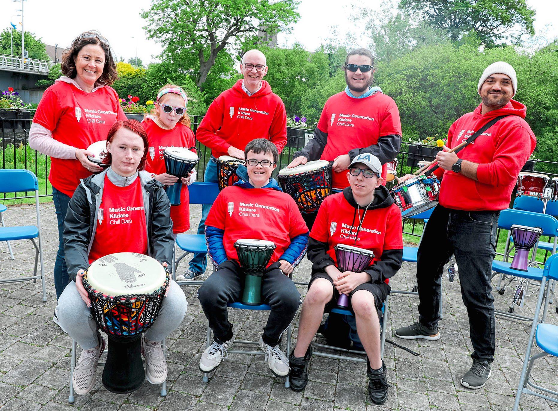 Leonardo Cassandro (Musician Educator) and Alan Costello (Music Development Officer) from Music Generaion Kildare with Sophie Lawlor, Conor O'Donnell, Sean Doyle, Mary Theresa Byrne and James Harrison