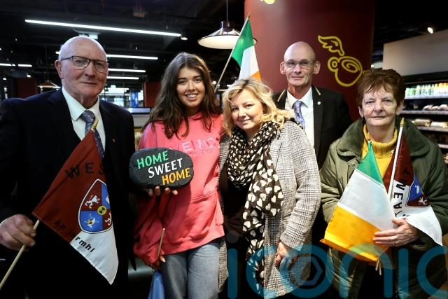 His grandfather Michael Cassidy held a “home sweet home” sign as well as a Co Meath flag as they waited.