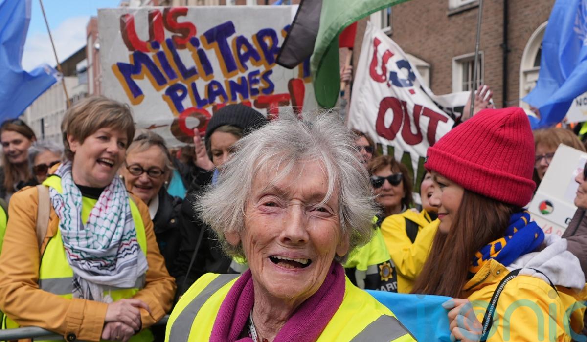 A 91-year-old woman has walked 220km to protest against the US military’s use of a Co Clare airport.