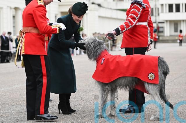 In London, the Princess of Wales paid a visit to the Irish Guards, buying a round of drinks as well as admiring the regimental mascot, an Irish wolfhound.