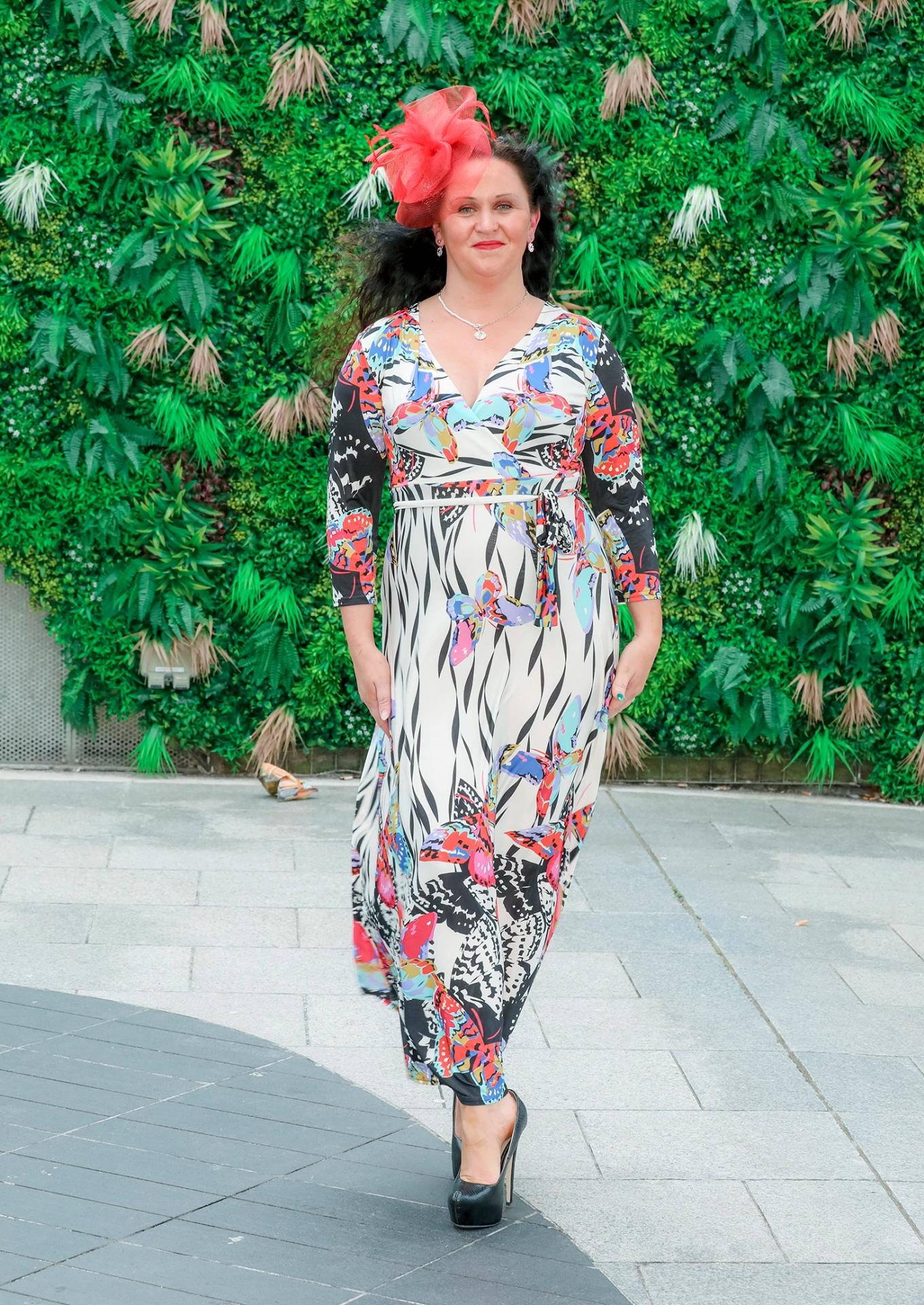 J’aime La Vie long v-neck dress €69.95, fascinator €14.95, necklace €25, earrings €15. All from Carraig Donn, Whitewater SC, Newbridge