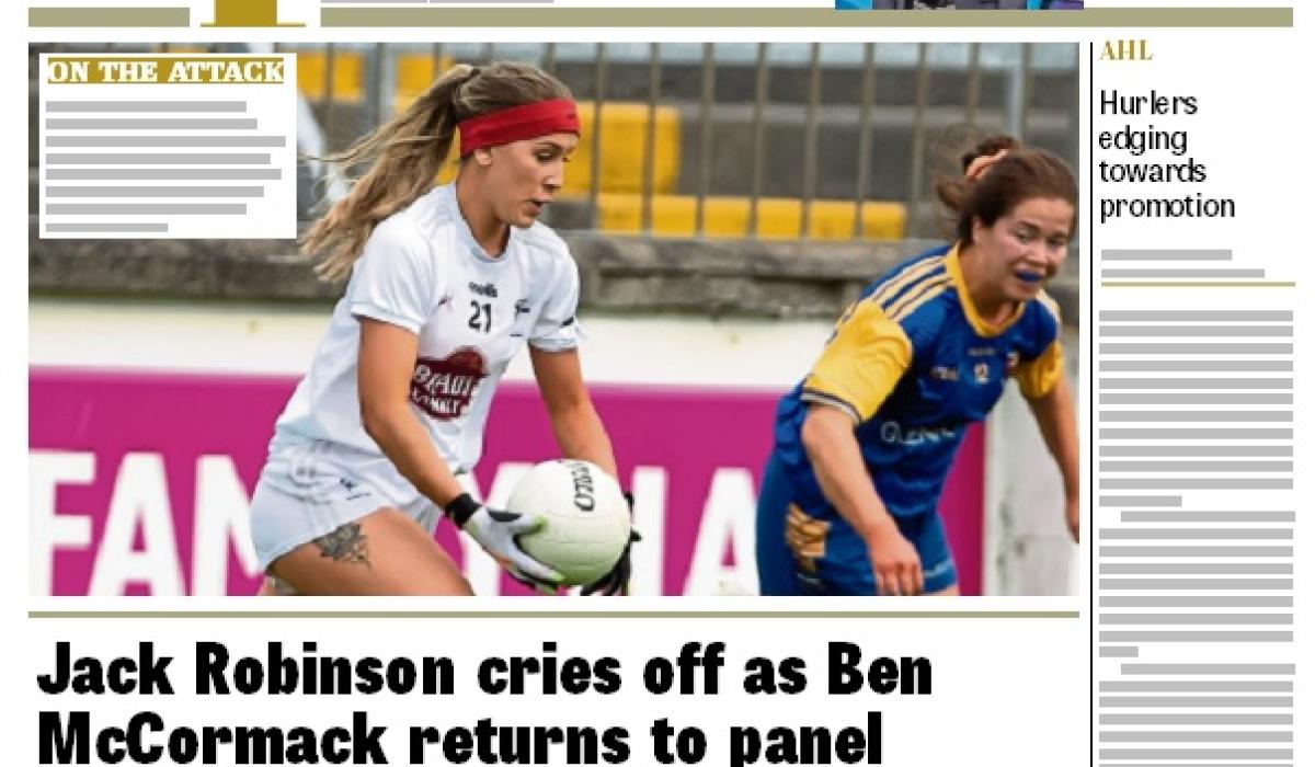 Injury forces Jack Robinson off Kildare panel, as Ben McCormack returns.