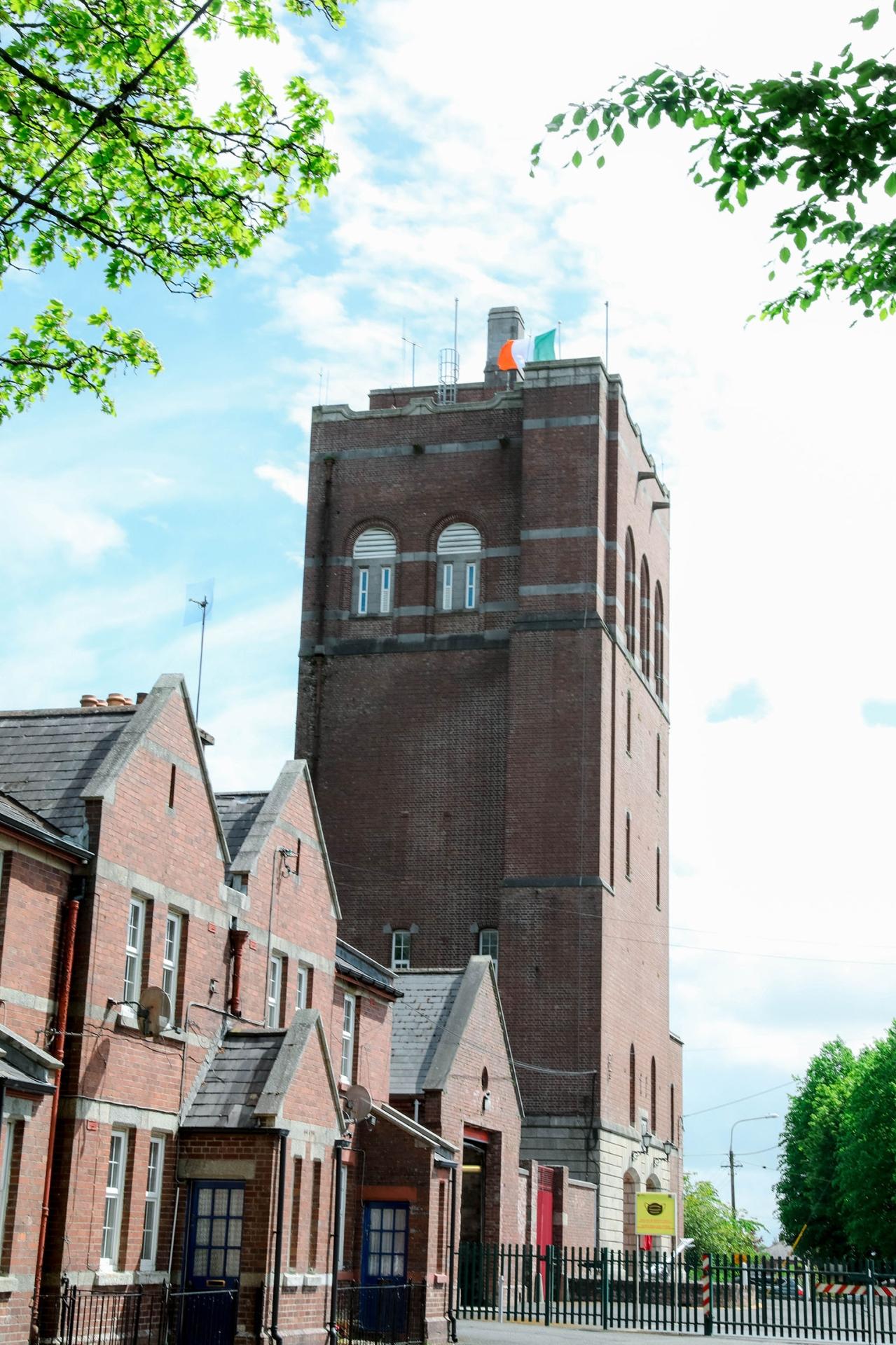 The Tricolour flying at the top of the Water Tower building