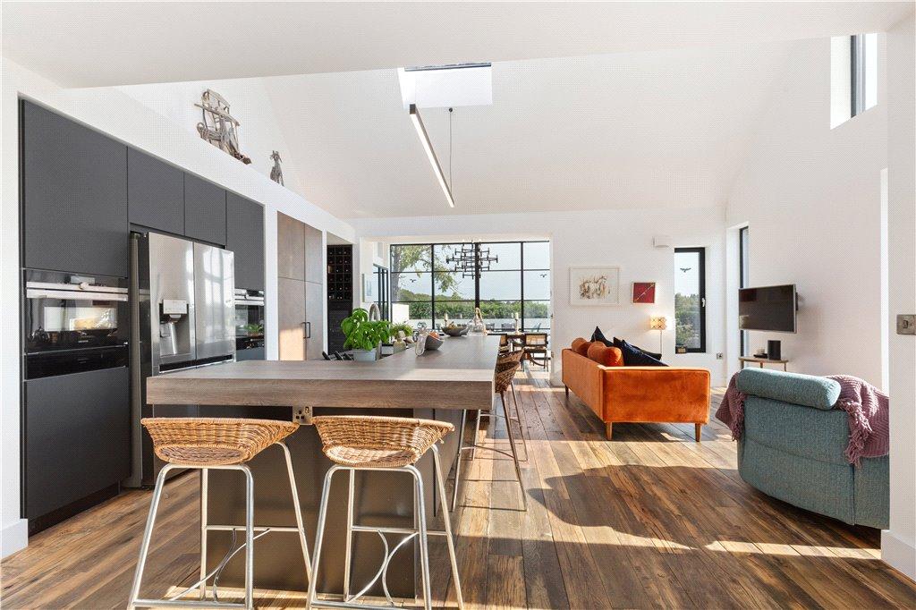 This stunning modern home at Coolree Lodge, Robertstown has an asking price of just under €1m. With a price tag of €995,000, it has been recently renovated, to add a striking contemporary style extension. The light filled accommodation extends to 2,777 square feet (258 square meters) and includes 4-bedroom suites.