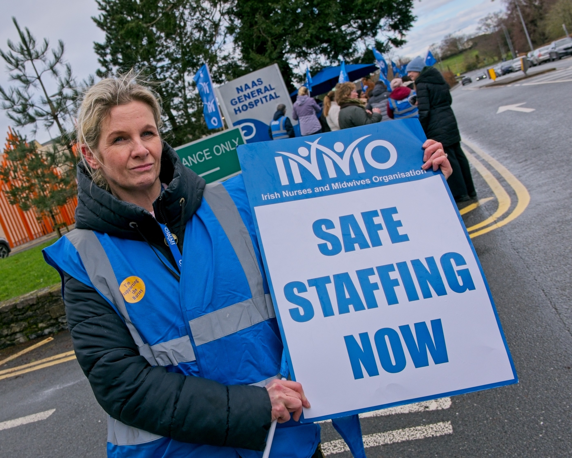 Clinical Nurse Manager, Áine Julian, at the INMO members in Naas General Hospital lunchtime protest outside the Hospital on Friday 13th February.