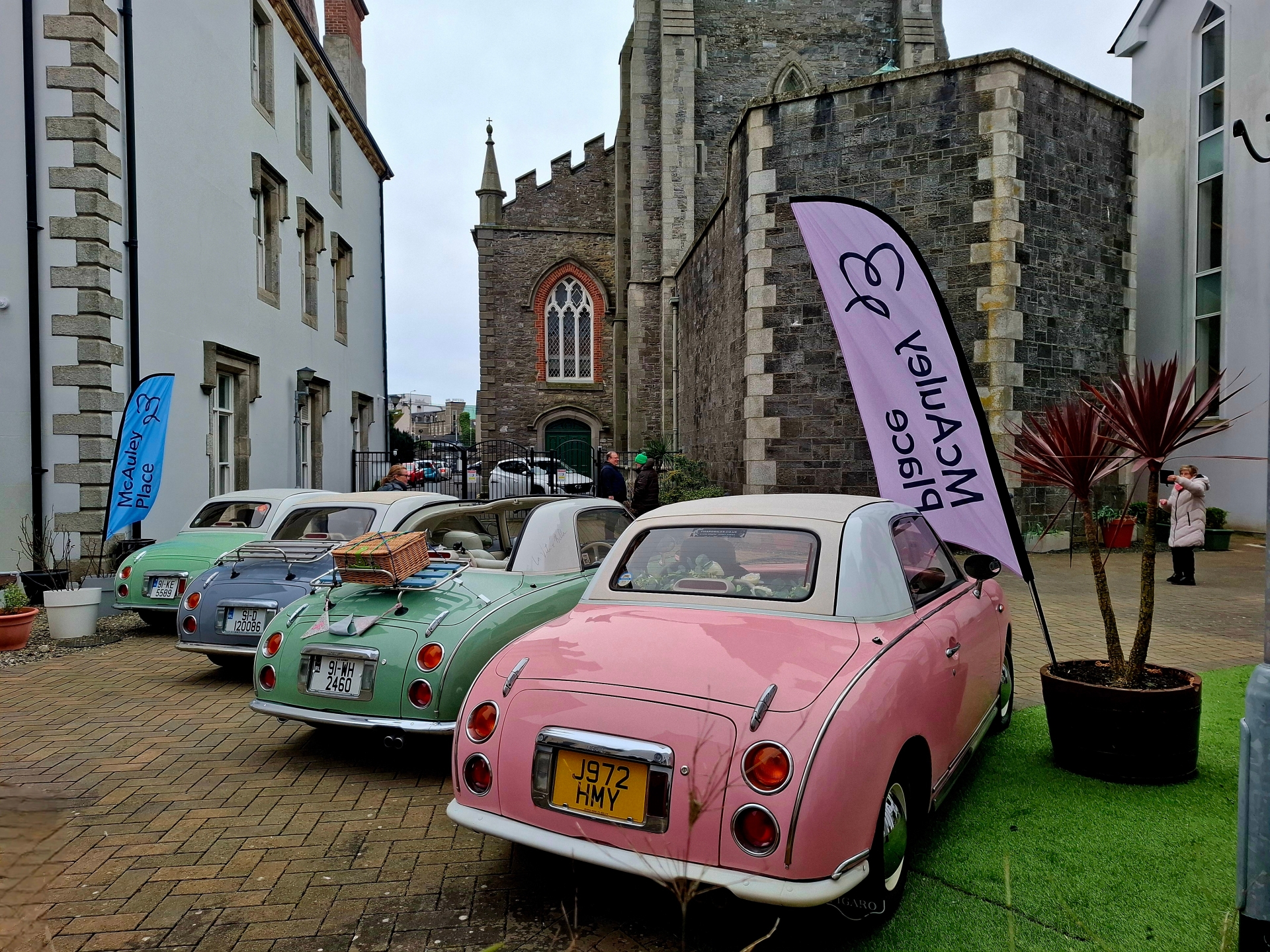 Our day was a resounding success—thanks to Mark, Sonia, Olive, and Rose for their generosity, we parked four sparkling Figaros in the heart of McCauley Place, capturing countless photos before we cozied up for afternoon tea.