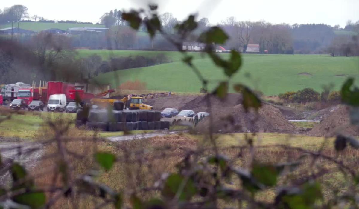 Two excavators are digging up earth in an area of open ground in Co Wicklow near the border with Co Kildare.