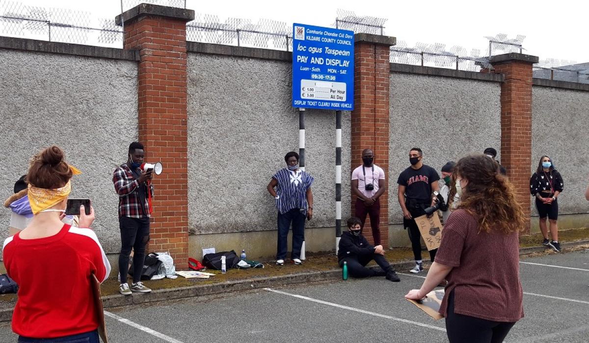 A crowd of well over 100 people joined in with chants of 'George Floyd' and 'Black Lives Matter', while they were asked to call out racism where they see it in their communities, at a peaceful Black Lives Matter demonstration in Newbridge this afternoon.
